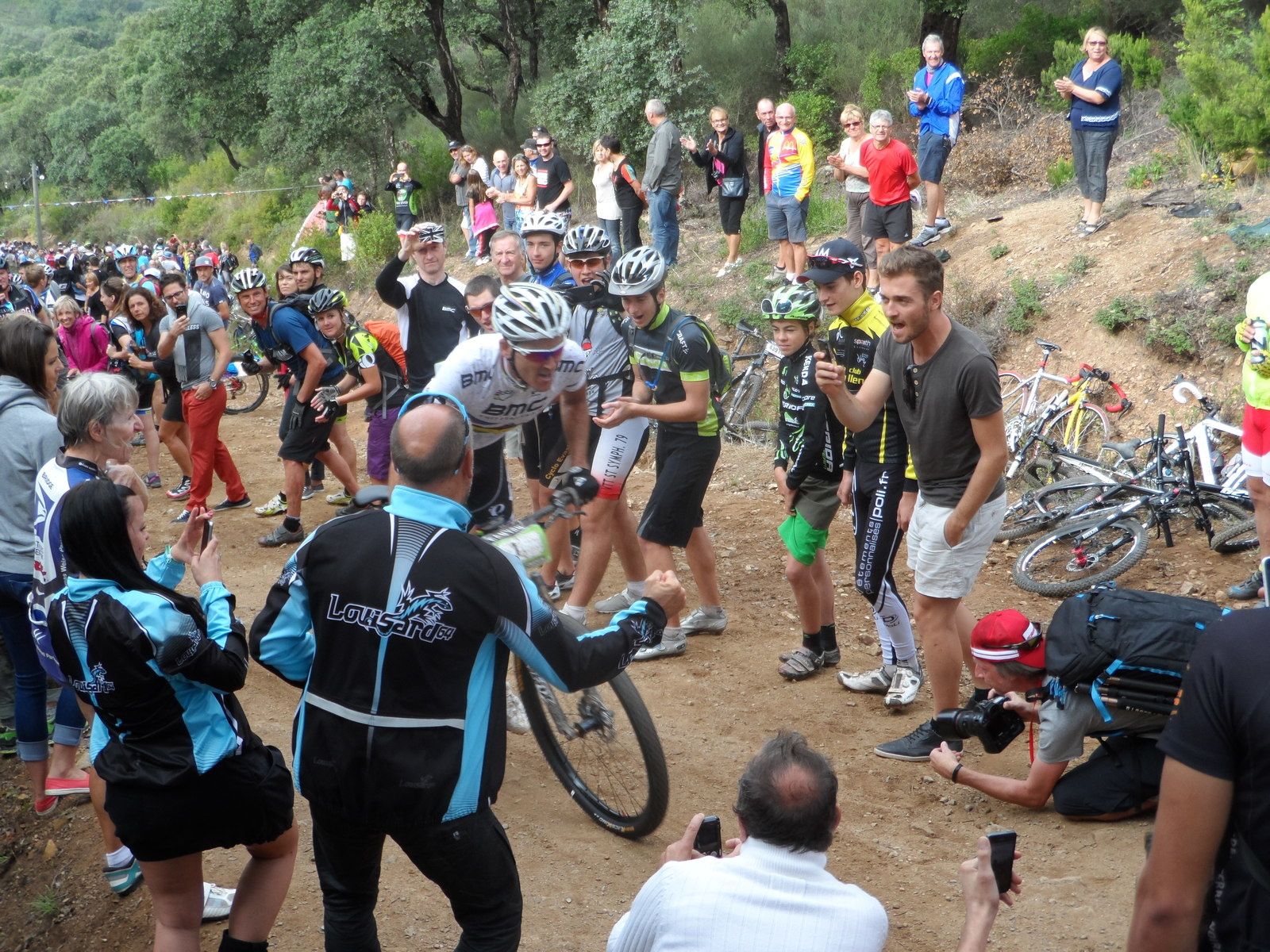 Beaucoup de spectateurs encouragent les coureurs.